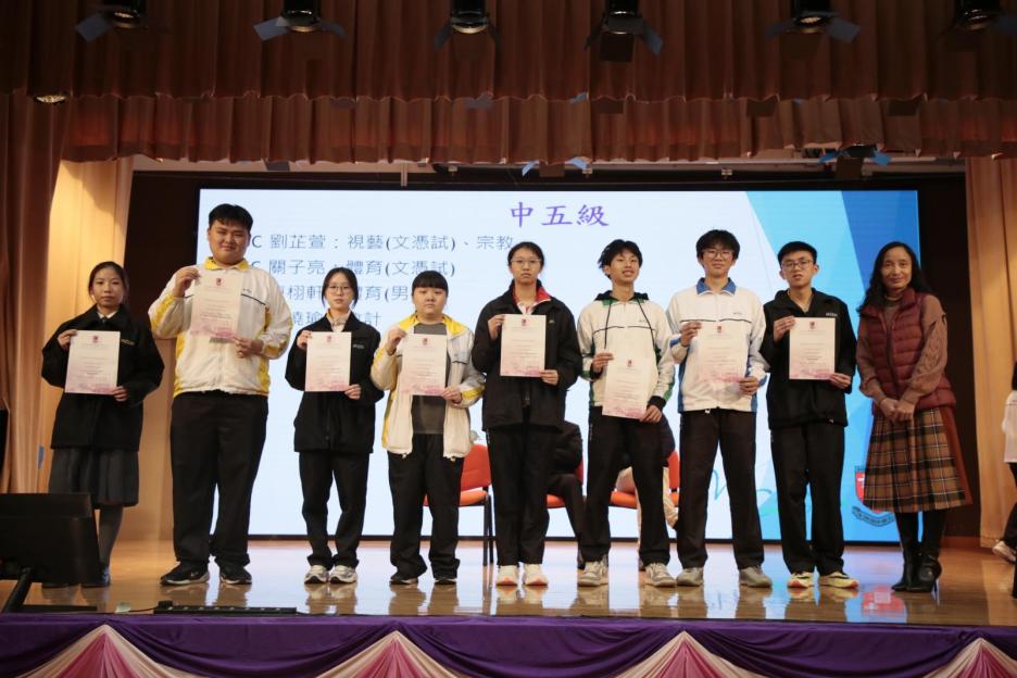 為表揚同學在過去第一個學期的努力,校方安排了第一學期學業成績頒獎禮,在典禮上頒發了各級的學科獎及各班的學業優異獎。盼望同學繼續努力,爭取佳績!