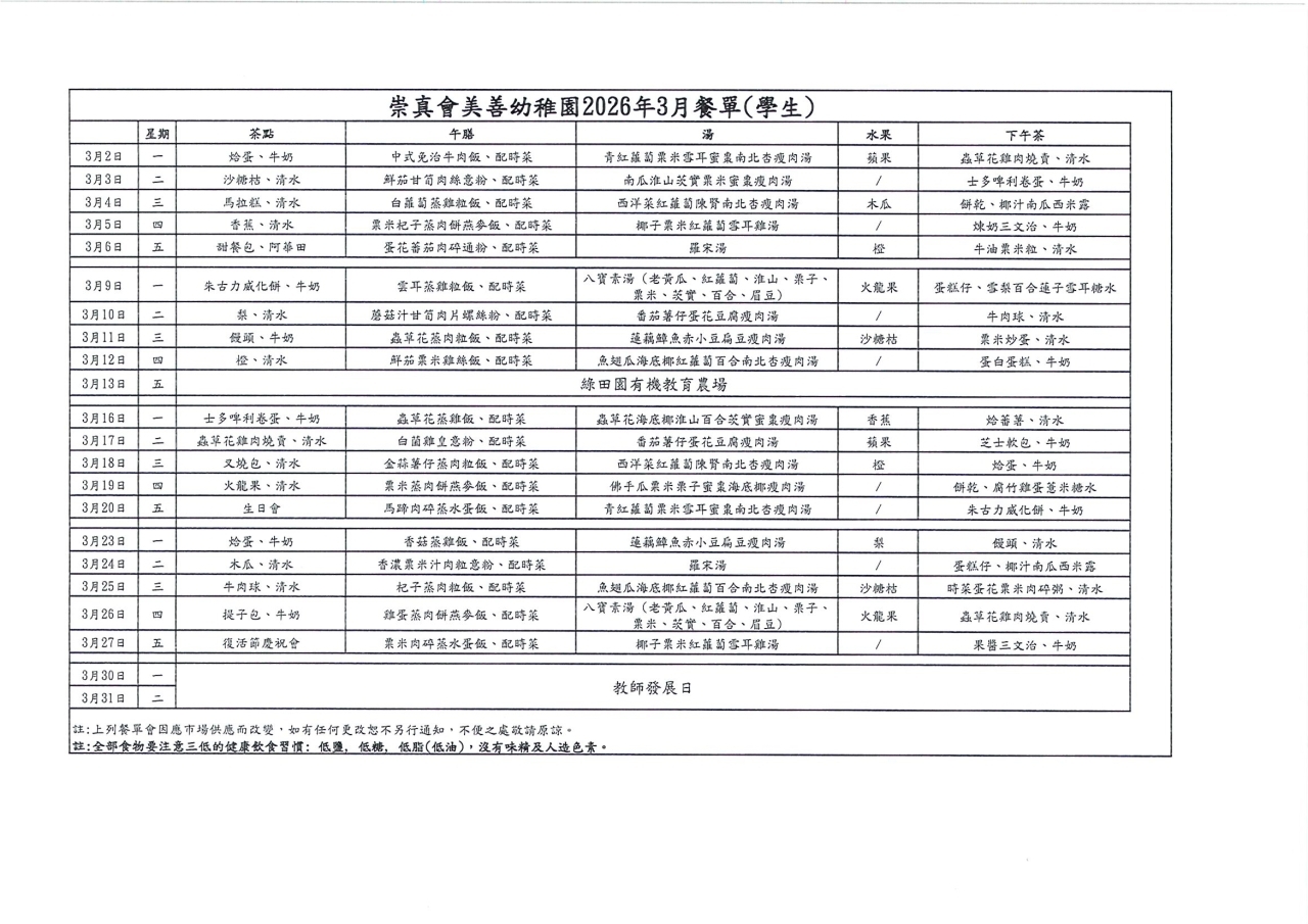 幼兒餐單