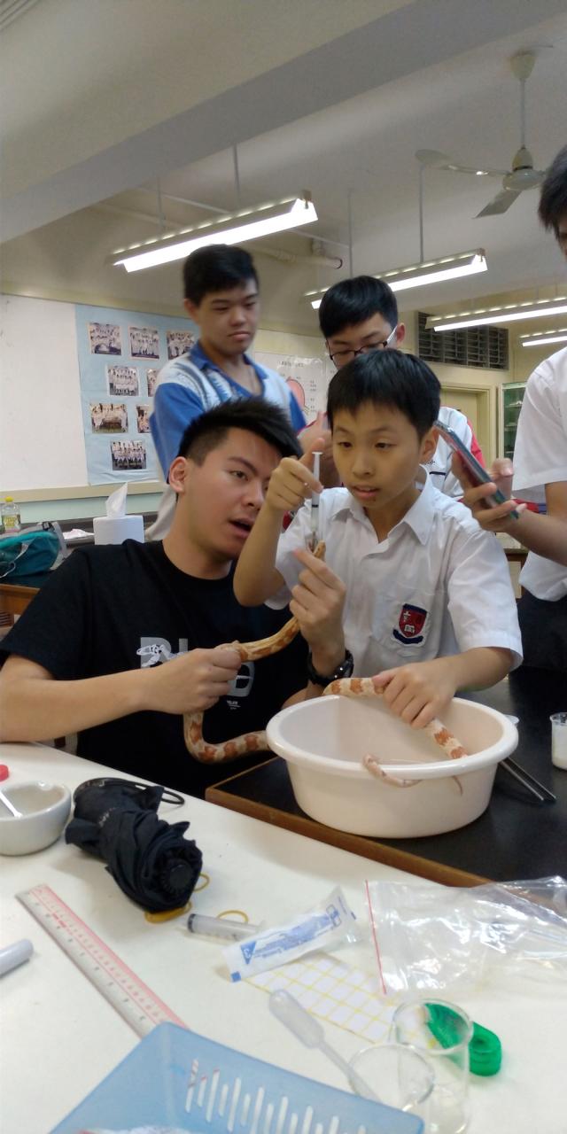 爬蟲館每年也會從中一、二年級招募學生擔任新一屆的飼養員,為的是讓新到校的同學能夠有機會接觸和飼養不同品種的爬蟲類動物。當完成了一整年的當值、學習及照顧後,有人受不了無形的責任,走了。也有人越難越愛,成為我們的組長、甚或升為館長。為的就是這種無以名狀的愛。