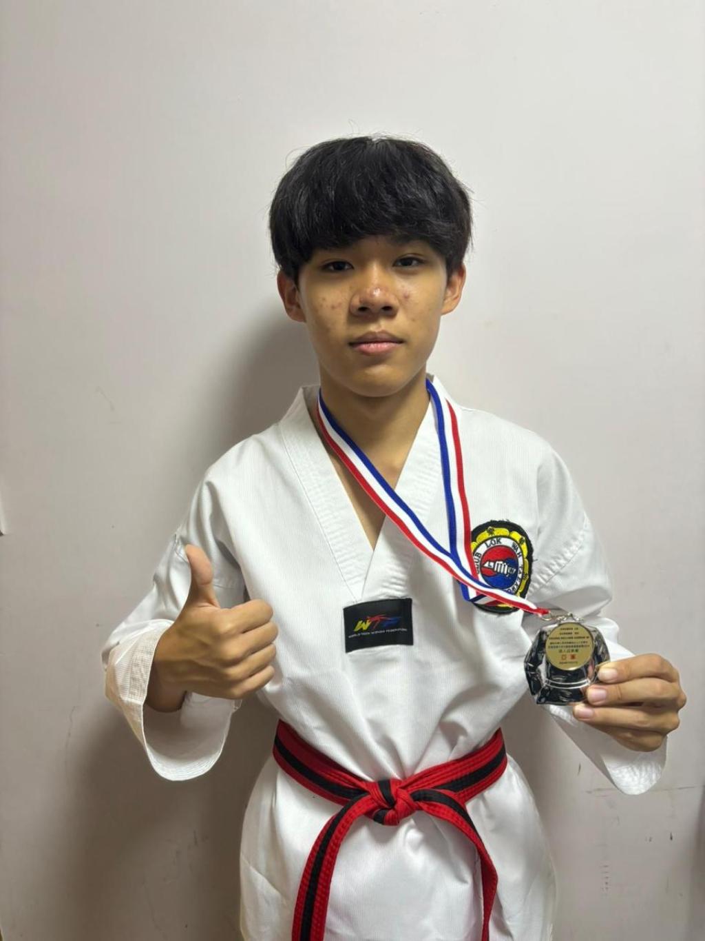 3B班何卓嵐同學在11月17日參加西貢區青少年分齡跆拳道邀請賽的男子個人品勢賽,何同學憑藉其精湛的技術和穩定的心態在比賽中展現了高水平的技巧,流暢的動作和自信的姿態,最終奪得亞軍,並贏得了評委和觀眾的讚賞。這次比賽不僅是對他過去努力的回報,更是對他未來發展的激勵。賽後,何卓嵐同學表示,他感謝教練和體育老師的支持,並希望未來能夠繼續參加更多比賽,提升自己的技術水平。