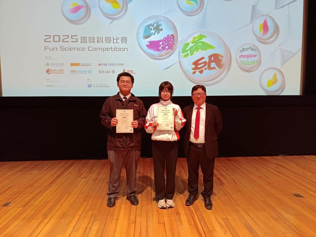 是次比賽中,同學們須設計及製作一件利用一張A4打印紙製成的器件,放置在設有支撐點的裝置上,並在沒有外力輔助的情況下,去盛載最多數目的波子。此比賽需結合物理科中力學的知識及設計與科技科中所強調的實踐,才能製作出一件體積大又具高受壓力的器件。而馬中的同學們都極具創意,最後在激烈的比賽中獲得低年級挑戰組的二等獎(2A 岑飛燕;2A 施珊妮)及高年級標準組的三等獎(4A 鄭見熙;4B 江雨潔)。
